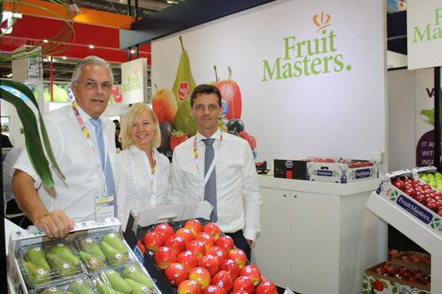 Het FruitMasters-team bestaande uit Leonard Kampschoer, Svetlana Soldatova en Fabien Dumont. Leonard verwacht dat de doorbraak in de perenexport naar China er nu echt aan zit te komen