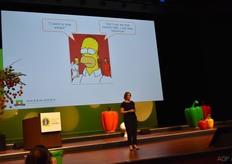 Louise Codling van het World Cancer Researh Fund sprak over de rol van de overheid en hoe de organisatie onderzoekt en in een database monitort wat werkt en wat niet werkt in de beweging van mensen naar gezondere keuzes.