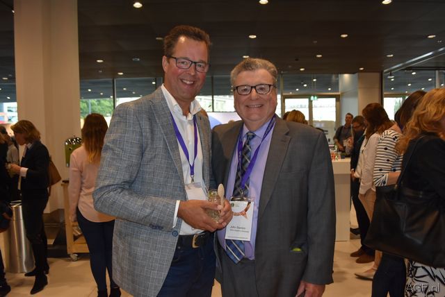 Jos van Mil van Greenco met John Stanton van Saint Joseph’s University, die sprak over de marketing van groente