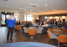 Ron de Greeff spreekt de deelnemers toe en bedankt VDL Nedcar voor het bezoek