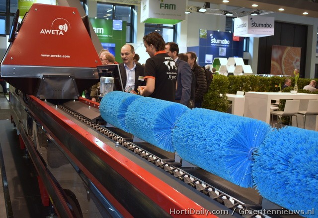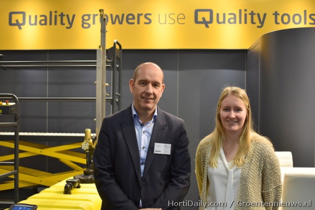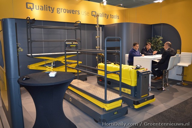 "Joris Bogaerts van Bogaerts Logisitics is eeen druk man. De slogan "Quality growers use Quality tools" trok veel aanloop."