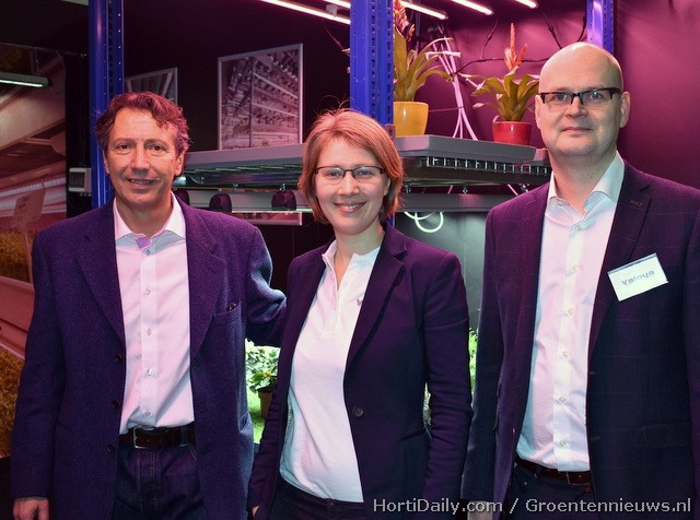 Nino Kivioja, Toppo Haikonen & Johanna Kivioja met het nieuwe Netled merk VERA voor vertical farming