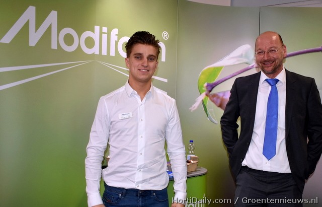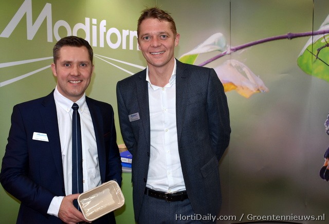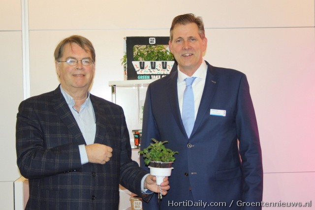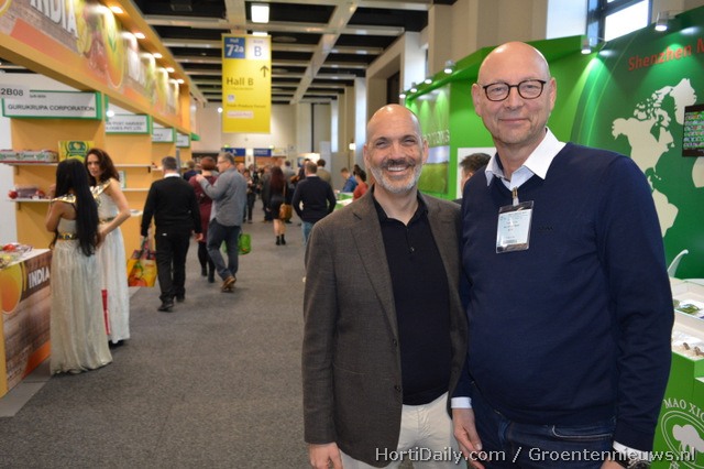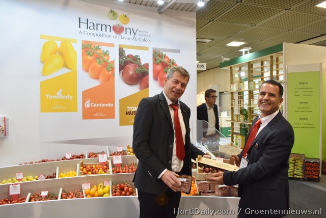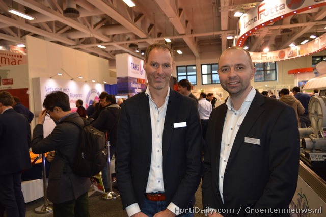 Veredelaar Toma-Tech trok flink de aandacht met het Toma'Muse concept. Op de foto Ofer Ben Zvi (rechts) met Wilfred Scheffers van WPK.