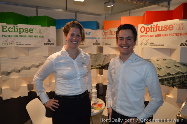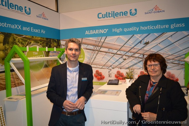 Ralf Derksen & Agnes Robert van Cultilene. Cultilene toont hun nieuwe glas type - Ultra low haze (5%)
