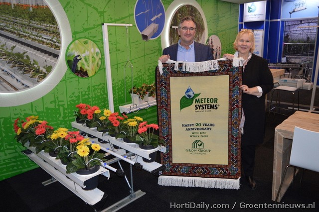 Wow ... Een fraai cadeau voor Meteor: een handgeknoopt tapijt voor het twintigjarig jubileum van Meteor Systems. Peter Lexmond kreeg het van hun dealer in Azerbeidzjan en is er enorm trots op.