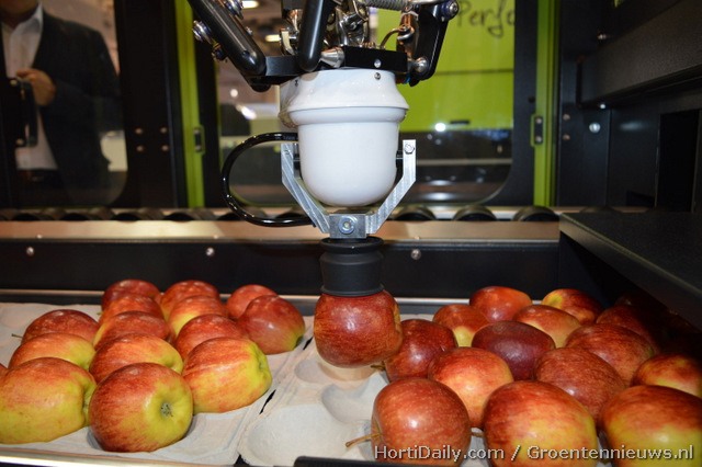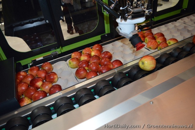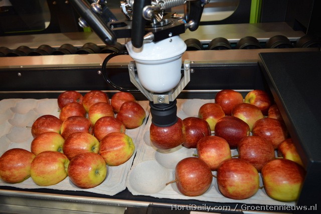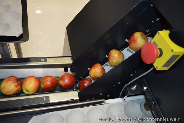 Greefa's SmartPackr2: Step 3: De appelen liggen met de blos naar boven en allemaal gelijk