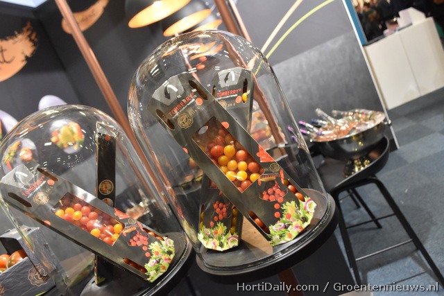 De nieuwe verpakking van de Tomberry pareltomaatjes