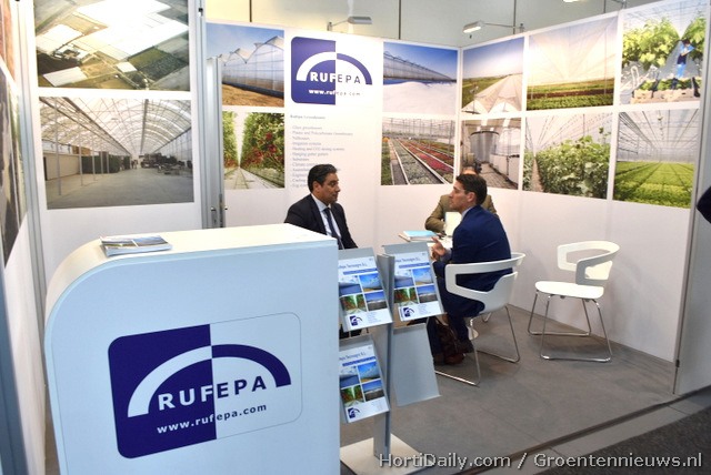 Younes Berada van de Spaanse kassenbouwer RUFEPA in gesprek tijdens de Fruit Logistica 2018