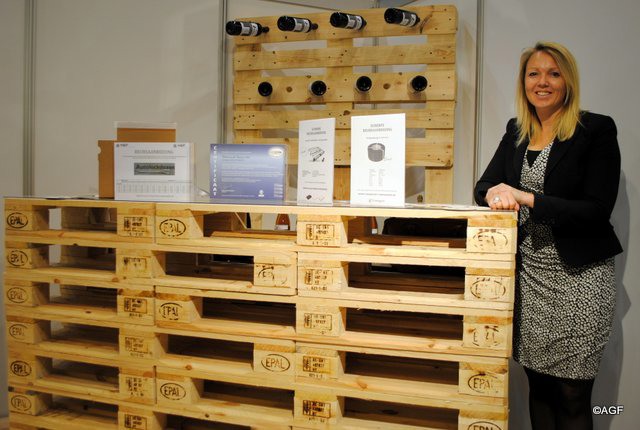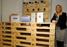 Melissa Panhuis van Pallethandel Panhuis. Ditmaal met een nieuwe creatie van pallets op de stand.