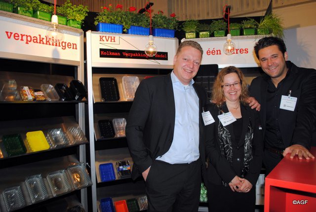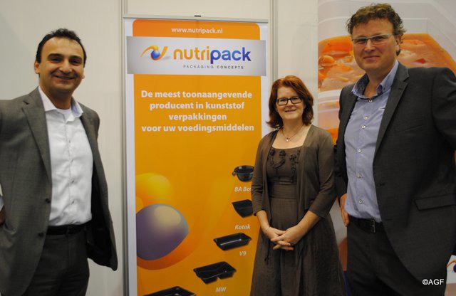 Gert Kolkman, Karin Biesheuvel en Michaël Smets van Kolkman Verpakkingen Hedel. Voor de eerste keer op de beurs!