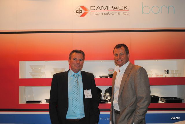 Theo Klabbers en Martin Kühne van Dampack International. Nog altijd zeer succesvol met de BeeMagicTray®, waar vorig jaar nog de Gouden Noot mee gewonnen is.