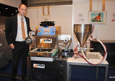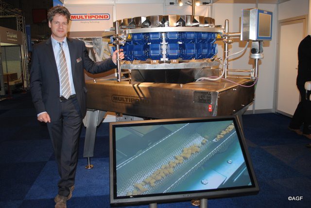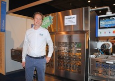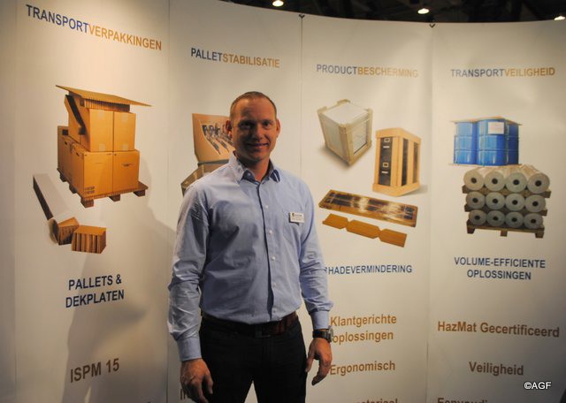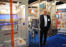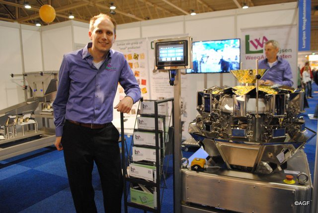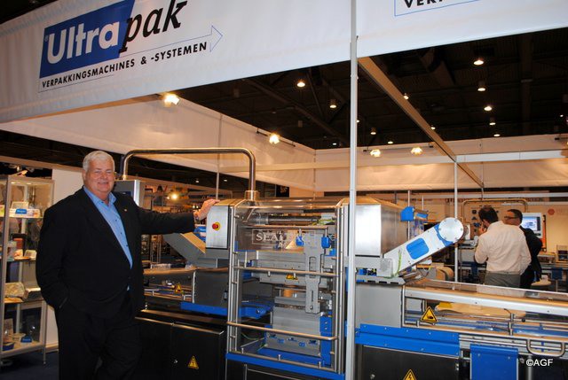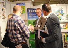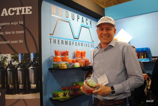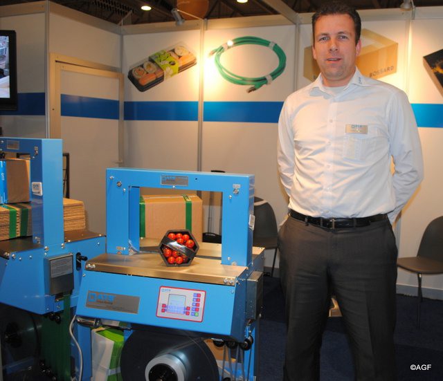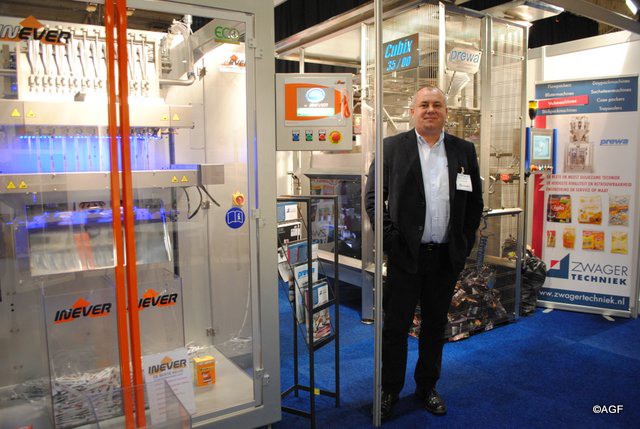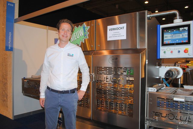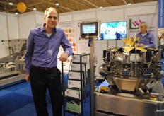 Pierre Hagenaars van Het Packhuys. Veel interesse is de machines voor het verpakken van zachtfruit en tomaten. Hij merkt een verschuiving naar topseal.