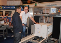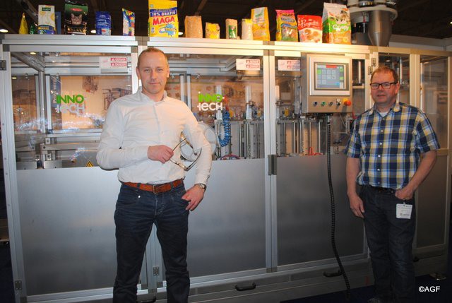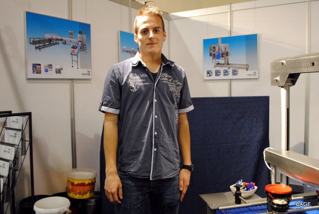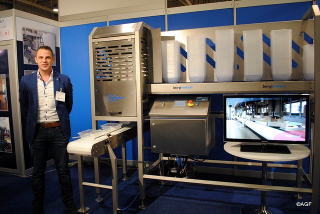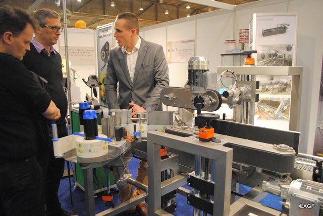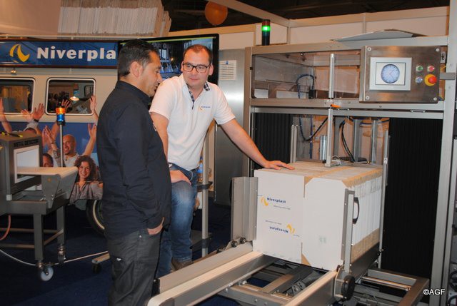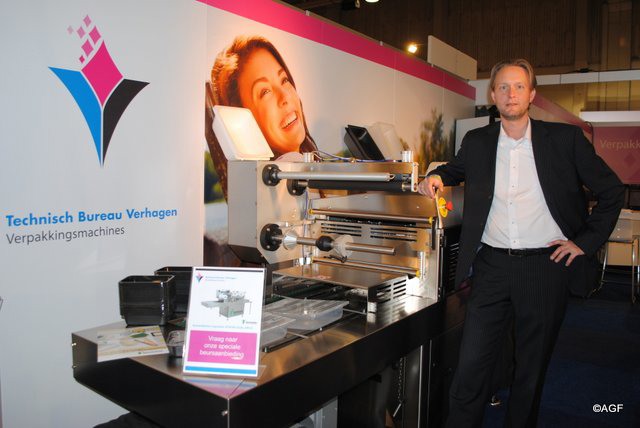 Erwin Bender van Technisch Bureau Verhagen. Dit jaar werd onder andere de vol automatische Athena Dueldriver gepresenteerd. Dit is een erg flexibele machine vanwege de 2 matrijzen, waardoor er niet verwisseld hoef te worden voor een andere productie. Daarbij heeft de Athena een op-en af foliesysteem. De folie gaat onder de matrijzen door, waardoor er geen folie meer verloren gaat. Zo blijft er 20% tot 30% meer folie over en dit is weer goed voor het milieu en kostenbesparing.