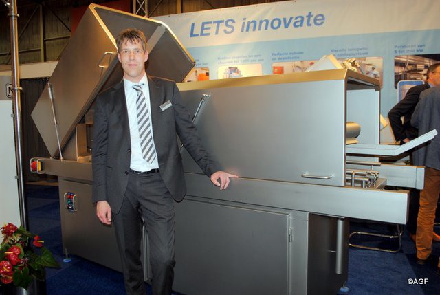 Jan Molenaar van Burg Metaal met deze ontnester voorzien van vol-automatisch vulsysteem, voornamelijk gebruikt in de maaltijdenindustrie.