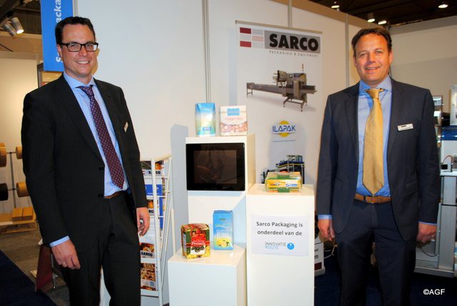 Mark van der Kamp en Jaap van der Sar van Sarco Packaging. Sarco was onderdeel van de innovatie route met het PRIMA PAK verpakkingsysteem.