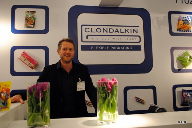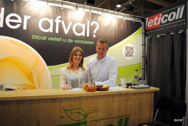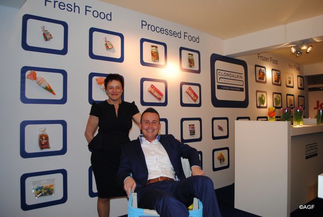 Martina Fidder en Jos van der Veen van Clondalkin Flexible Packaging Grootegast. Presenteerde het brede scala van flexibele verpakkingen.