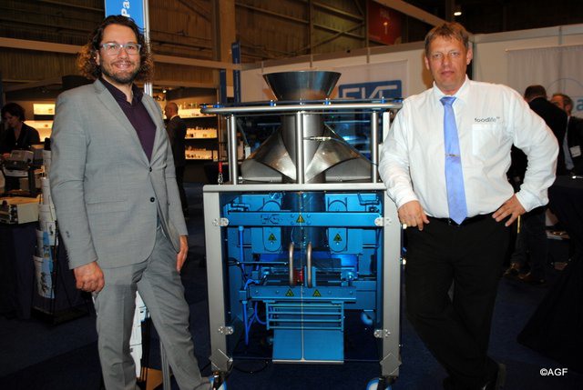 Evert-Jan Wassink en Romke van Velden van Sorma Group, ook onderdeel van de innovatie route met de Sormabag netverpakking voor diverse AGF producten.