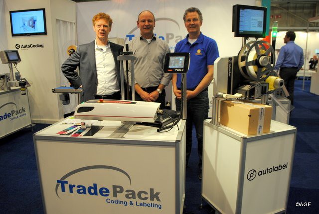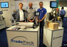 Peter Dräger, Fred Simon en Johan van der Elksen van TradePack Coding & Labelling. Actief in onder andere etiketteren en dooscodering, waarmee voornamelijk producten van variabele informatie wordt voorzien. Ook werd een combi van printen + etiketteren gepresenteerd.