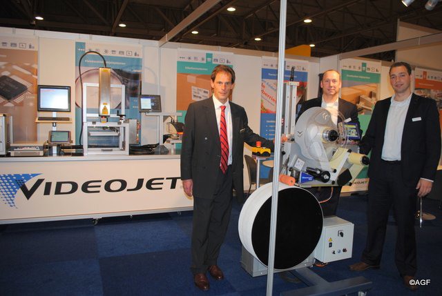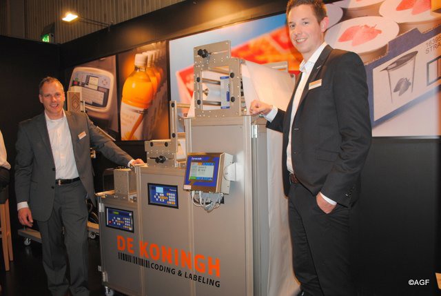 Ijsbrand Nieuwenhuijs, Marc van Luxemburg en Marcel Weijs van Videojet. Op de foto de 9550 Labelprint applicator. Heeft een direct apply voor printen en aanbrengen. Hierdoor is het snel en betrouwbaar. Verder is het volledig elektronisch bestuurd en heeft het een kort labelpad.