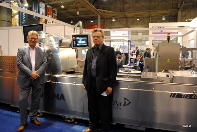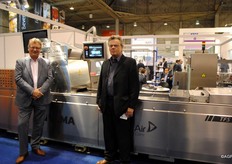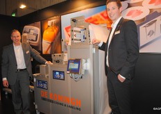 Alex Hofstee en Staf van Weutswinkcel van Ulma. Deze Thermoforming skinverpakkingsmachine is een samenwerking van Ulma, Sealed Air en Cryovac.