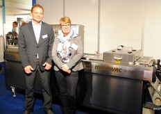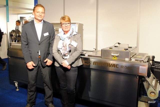 Evert Wichers en Elise van de Geer van Multivac, met de R085 is de meest compacte dieptrekmachine uit het aanbod van Multivac en is speciaal ontwikkeld voor producenten die kleine tot middelgrote productieruns draaien.