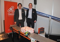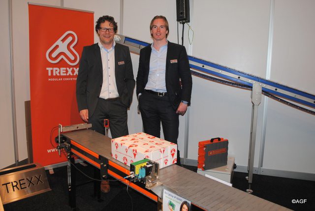 Arthur Oude Roelink en Mark Mulder van Trexx. Zij maken conveyors waarvan het frame van kunststof is in plaats van staal of aluminium. Het is licht materiaal en makkelijk in te korten.