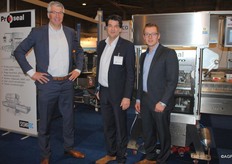Gerrit Tijhof, Gerard Buis en Jorie Aerts op de combinatie stand van Proseal, Sismatec, Webomatic en Bilwinco.