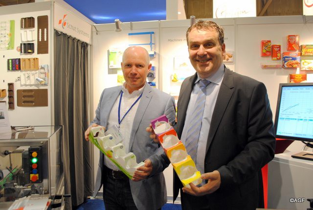 René Ruessink (Pillopak) en Richard van der Does (Schut Systems), de trotse mannen achter de samenwerking voor deze appeltray.