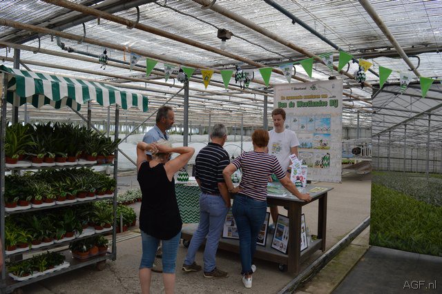 Richard de Rijke van De Westlandse Bij gaf tekst en uitleg bij zijn strips in de kas van Kwekerij Dragontree.