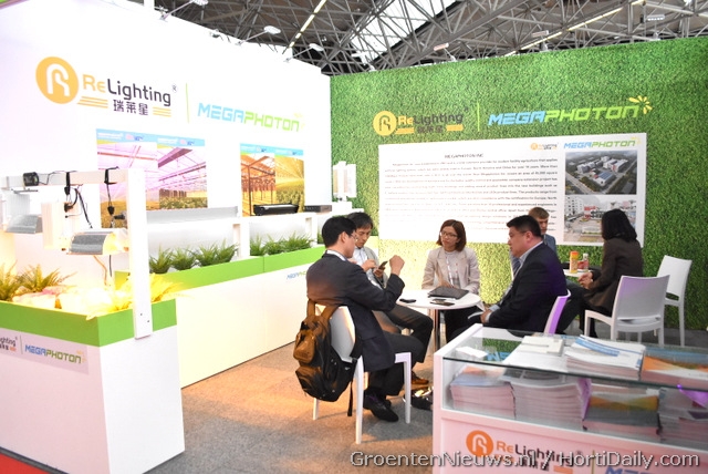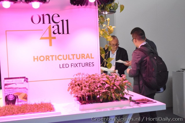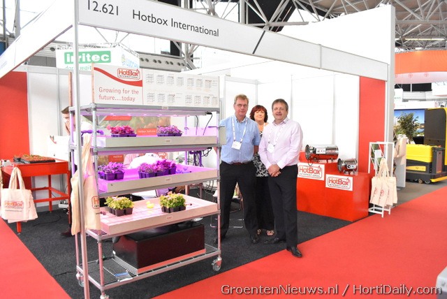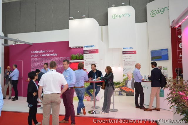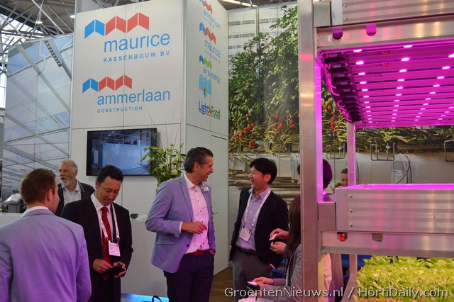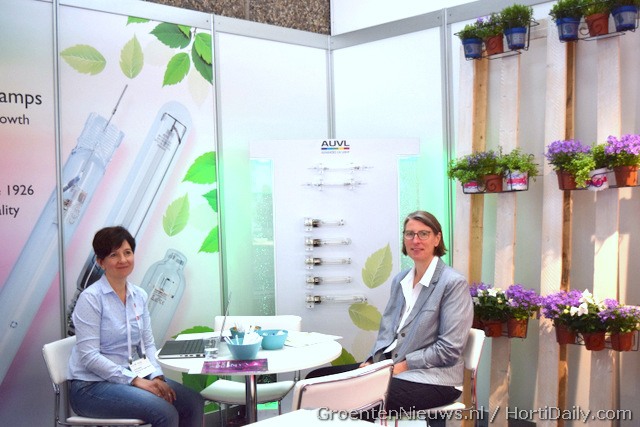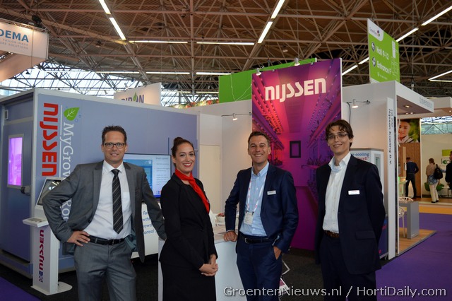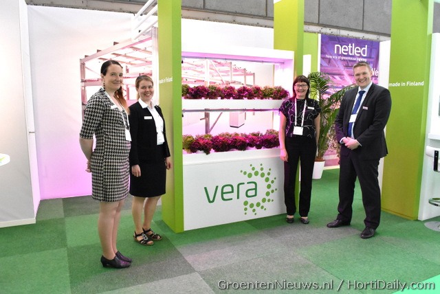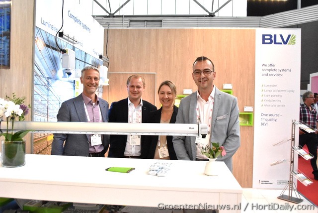 Always cozy at the Hortilux stand: Paul van der Valk, Vera Bouklakova, André Flinterman and Karin Brinkman.