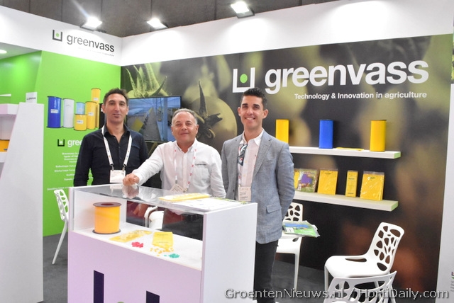 Lucien Knetemann and Jorn Hebels from Glasimport Greenhouses had a Spanish visitor: Rebeca Gallar from Looije Aguilas.