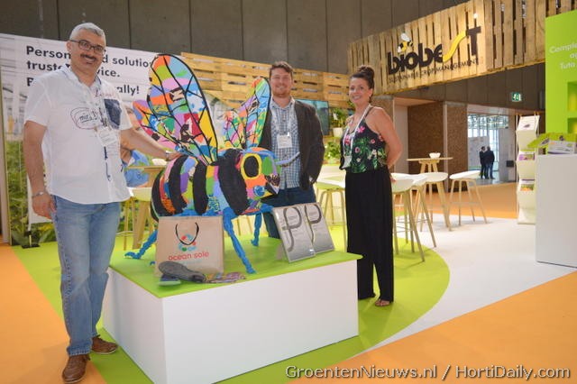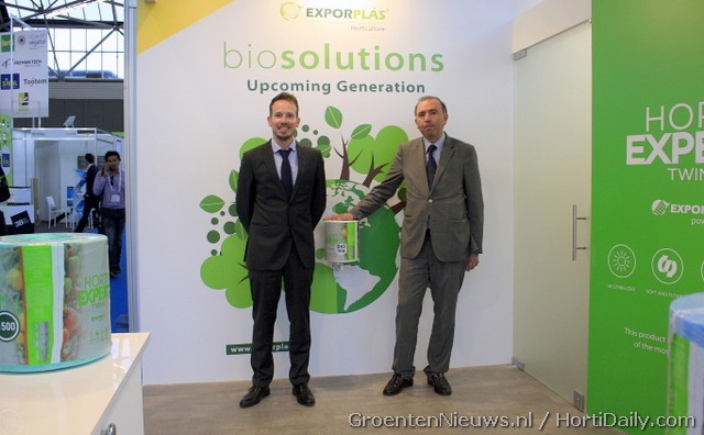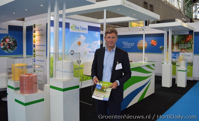 Joris van Calcar of Lankhorst Yarns could tell visitors at the fair that Wageningen University has scientifically proven that his Bio Twine is for 99% disappeared after 6 weeks of composting.