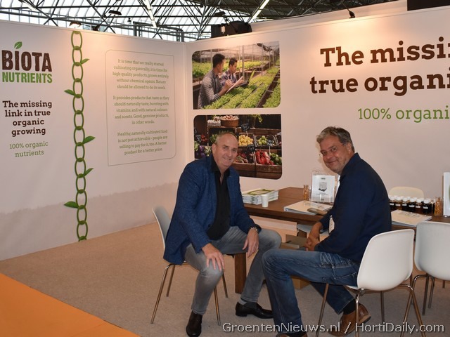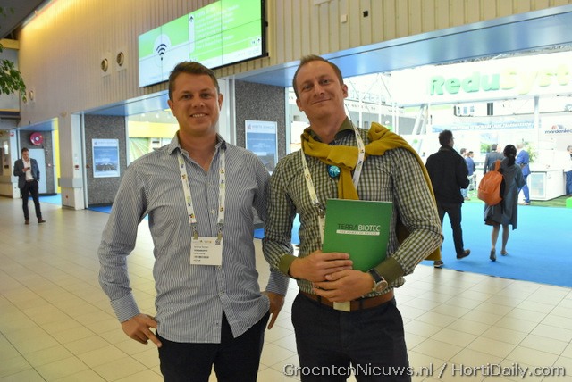 Geert Bakker (on the right) from Biota Nutrients talking to Frank Combee from Horticoop.
