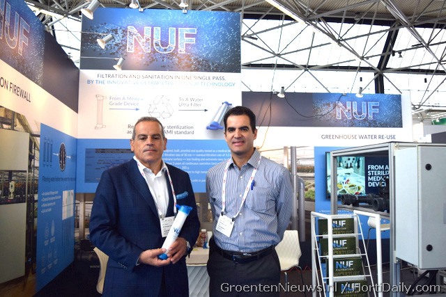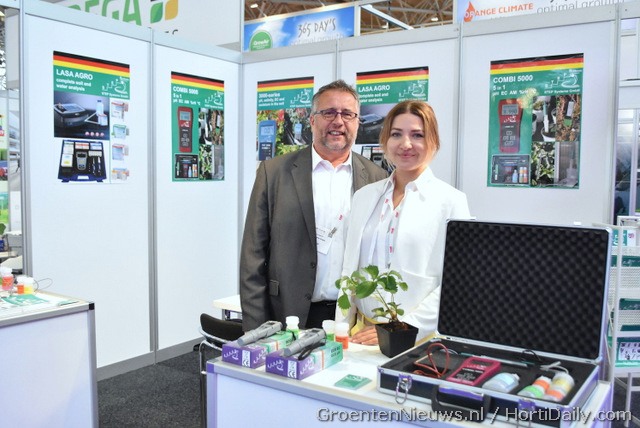 Wubbo Wind (Besgrow Europe) and Wayne Kemerink (Dutrion) together posing with a new dosing pump. Dutrion presented this new development in the area of dosing at the GreenTech in collaboration with In-Fluid.