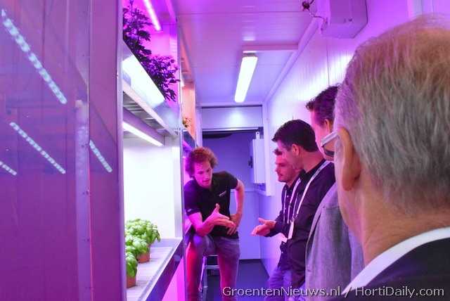 Sjaak Bakker (Wageningen University & Research) in front of a simulator in which can be grown under fully conditioned conditions in a closed system with 100% recirculation. The setup is working in real in Antartica, so that there can be practiced with growing under extreme conditions and people can be trained for future Mars missions.