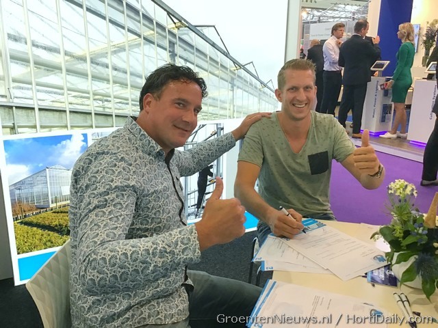Pieter Breugem (Hogervorst Tabben Kassenbouw) and Ronald Streng (Nico Streng Boomkwekerijen) signed the agreement at GreenTech