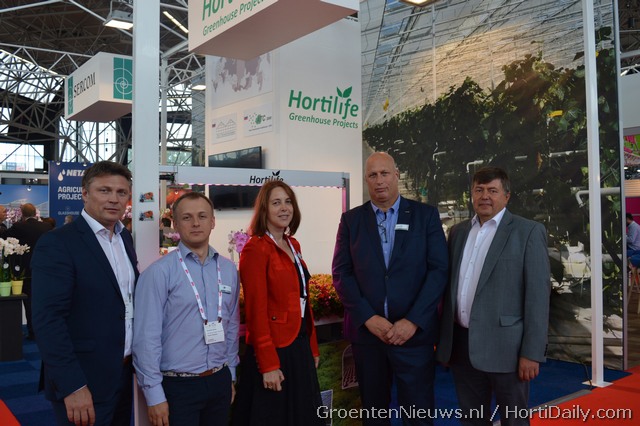 Hortilife: Pieter Jan Overkamp, Alexander Tarasov, Katja van Berkel, Adrie Daanen with visitor Miglans (A.M. Ozoli SIA).