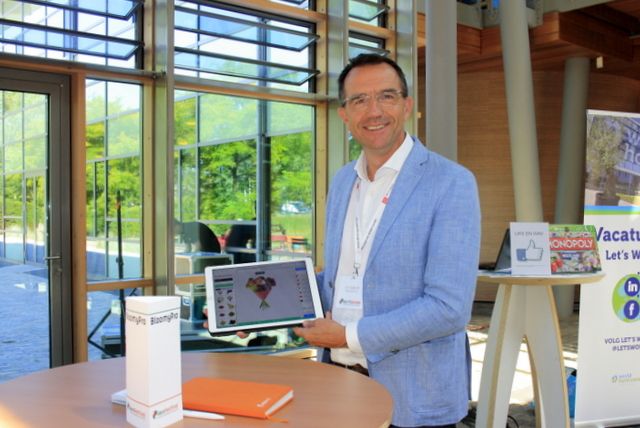 Diverse bedrijven hadden een stand. Hier Tom van Velzen en Marissa Kloppers van Let's Work - World Horti Center.