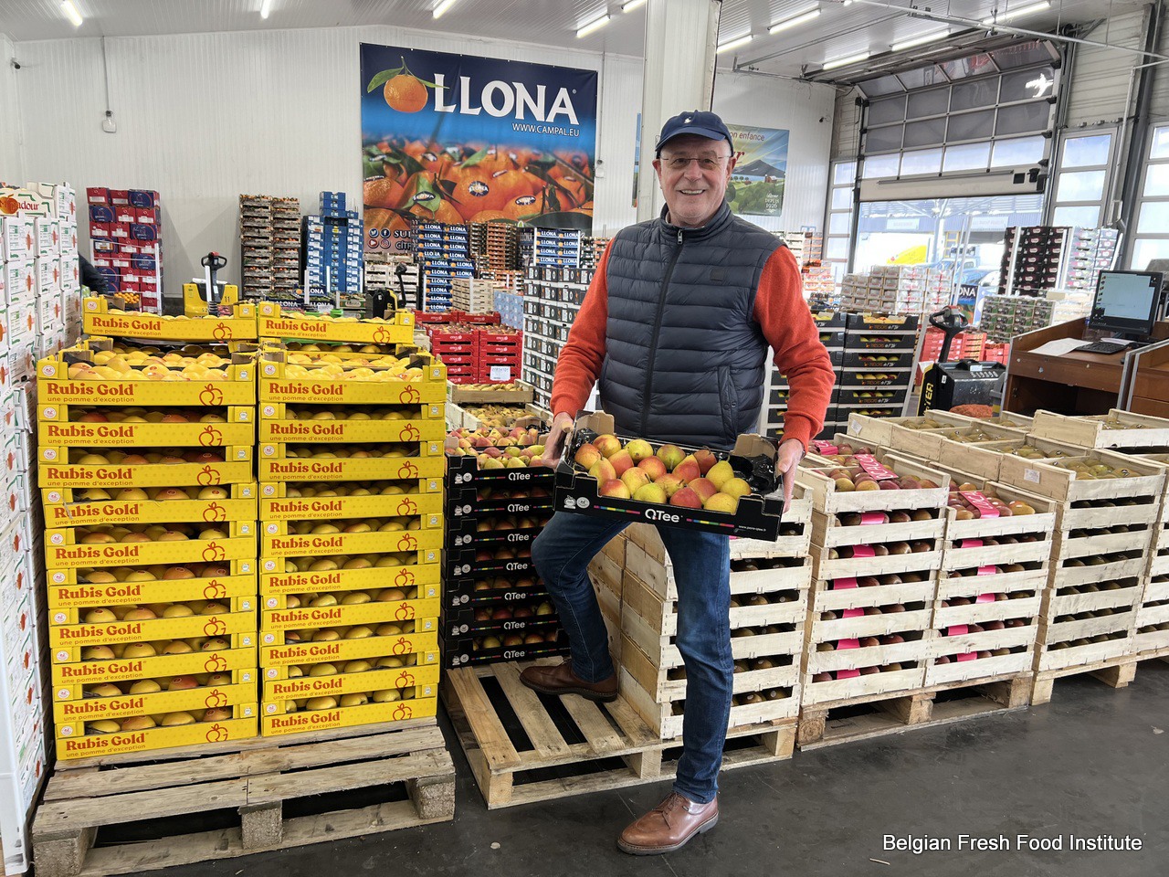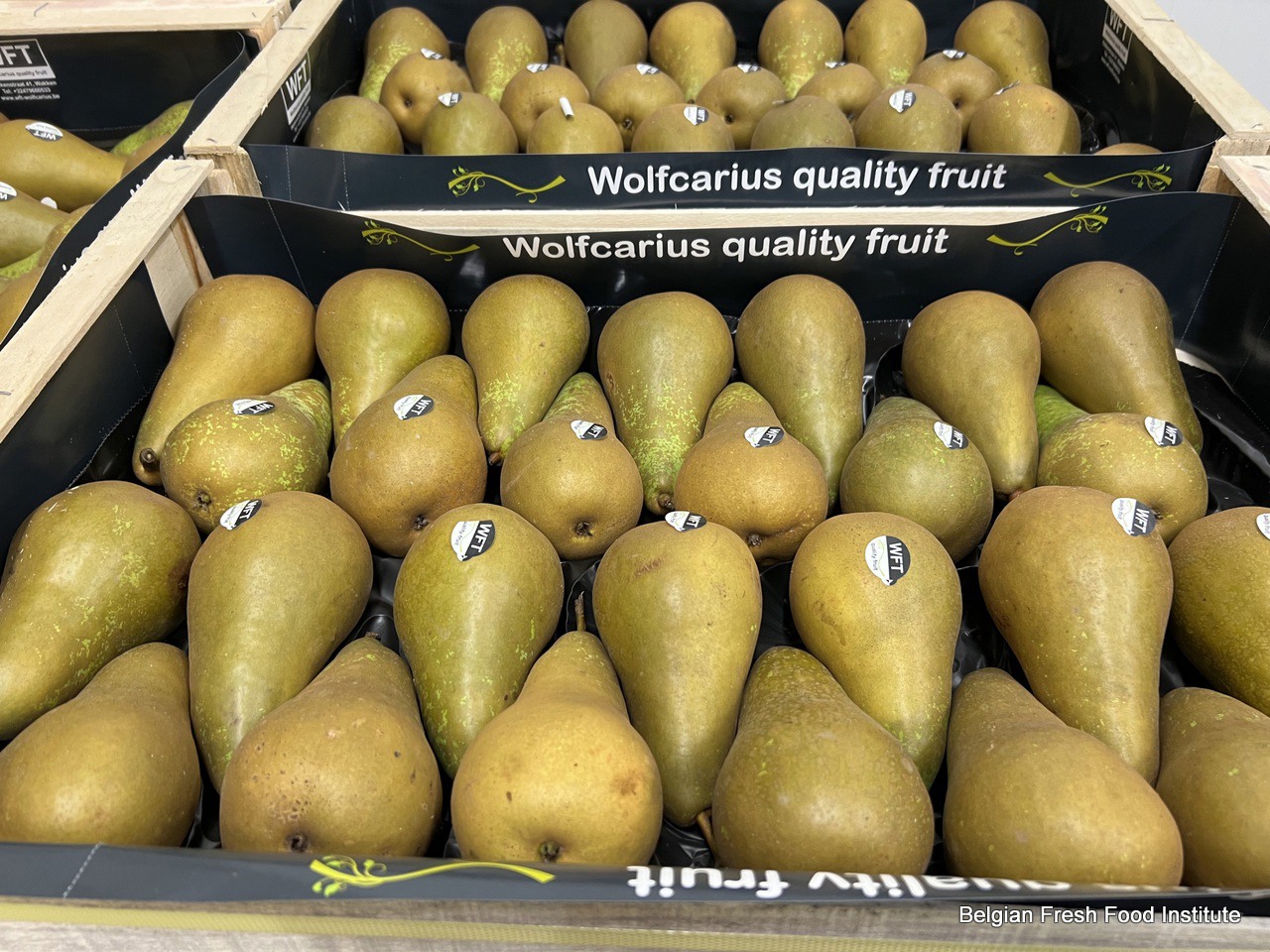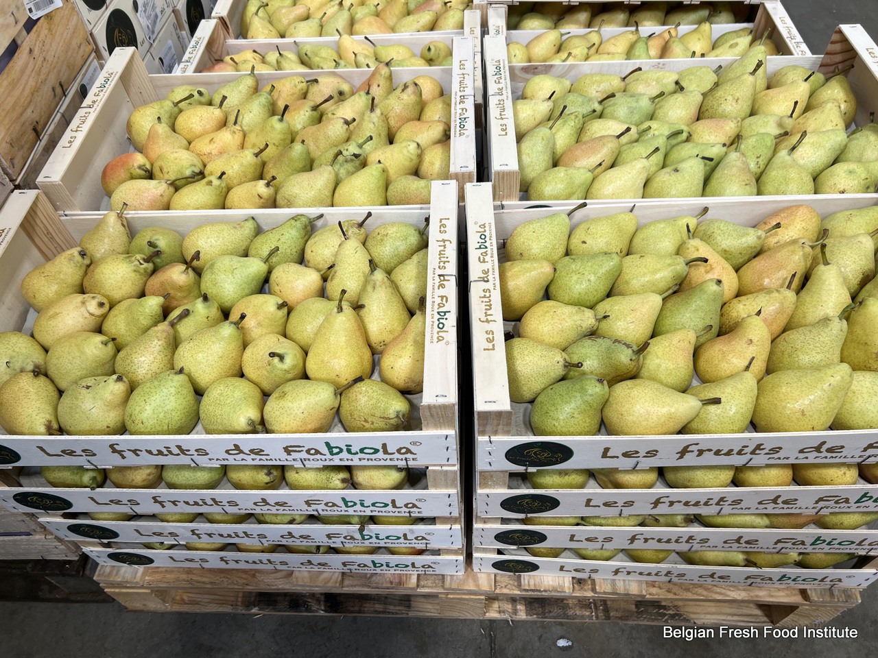 Jan met Franse QTee peren die iets rijper verkocht worden dan Belgische