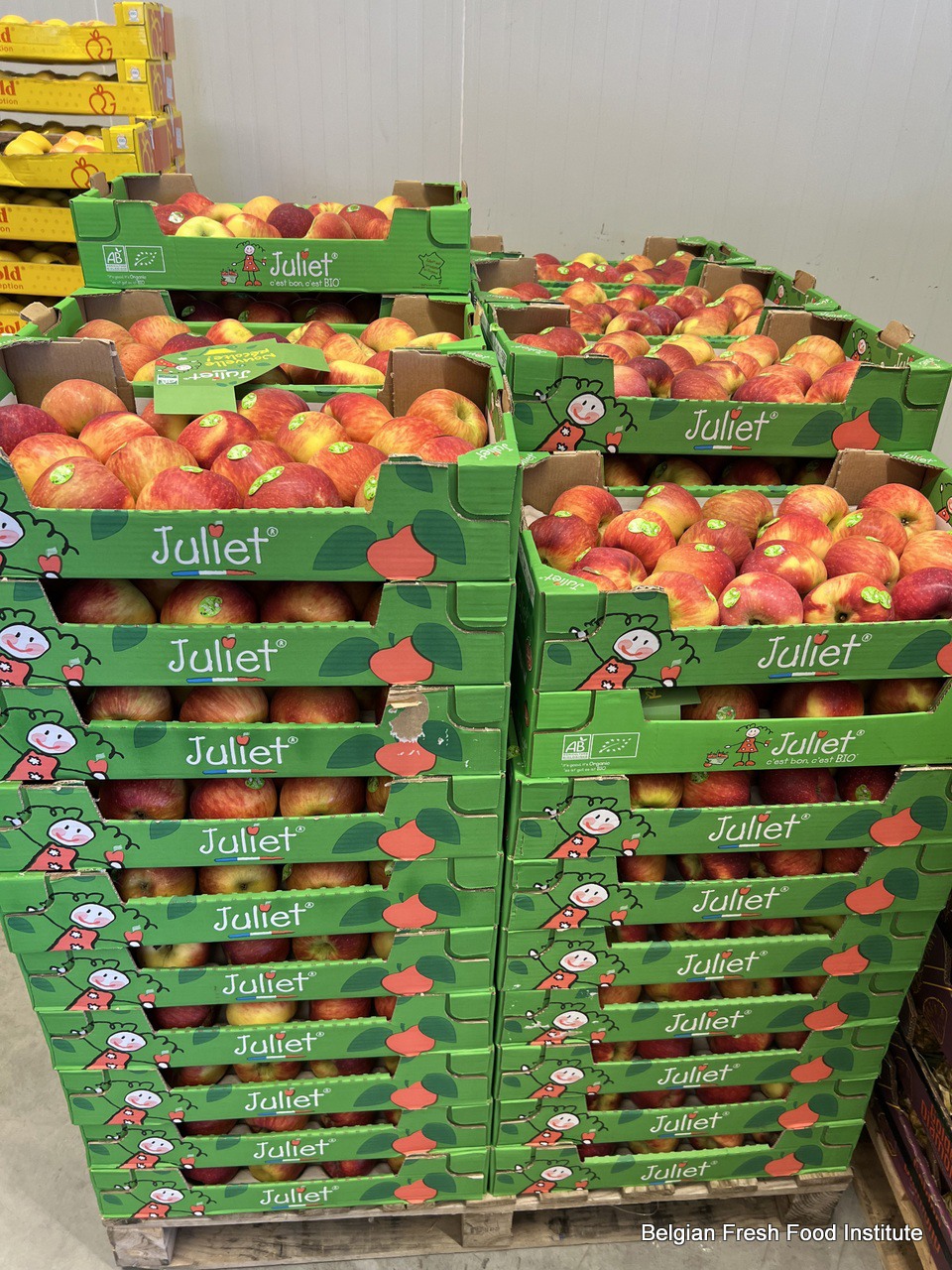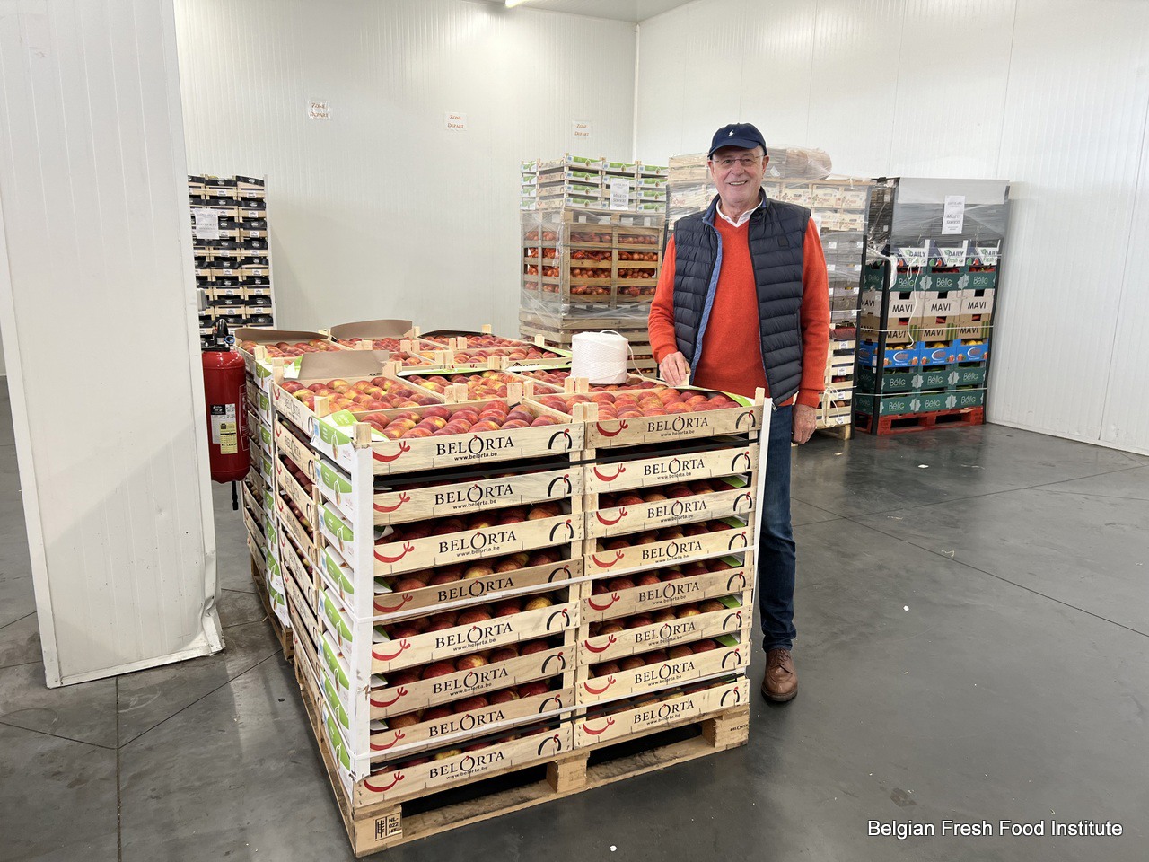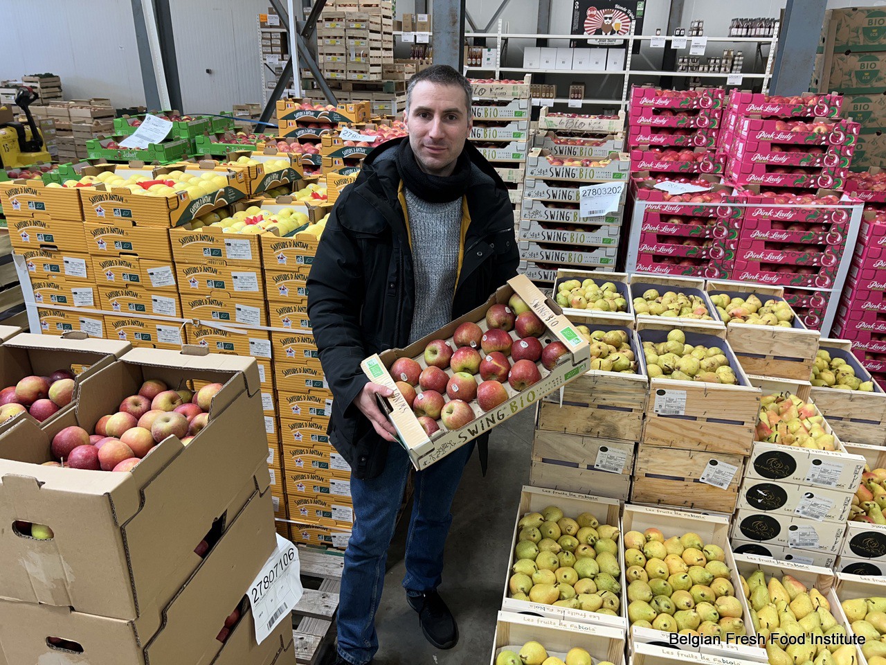 Jan met Franse QTee peren die iets rijper verkocht worden dan Belgische
