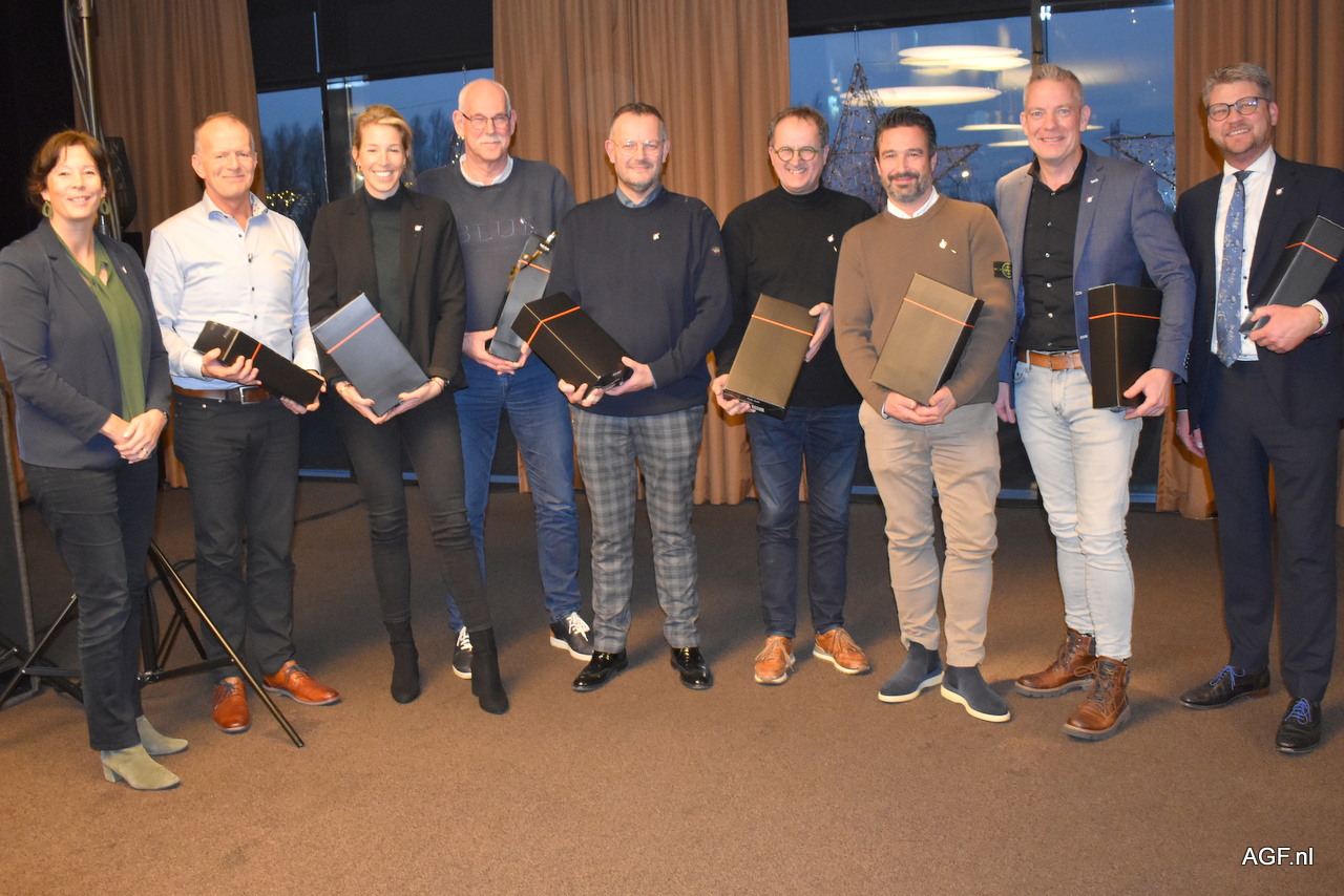 Milou Peeters-Testers en Dick Don van Van Meir, Lennart Ras van TOP, Arie van Baalen van River Onions en Gerard HOekman van Mulder Onions
