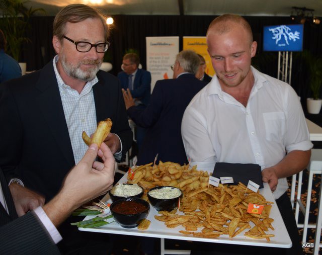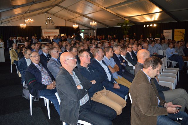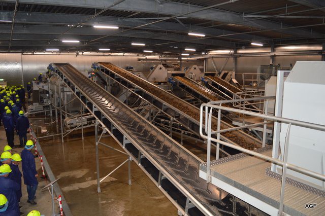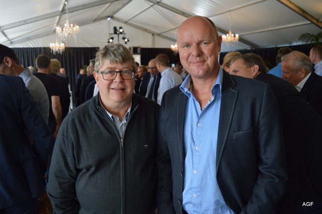 Veel relaties bezochten de opening van de nieuwe was- en sorteerlijn. Links Arjen van Burg van Burg machinefabriek en Joan van Burg.