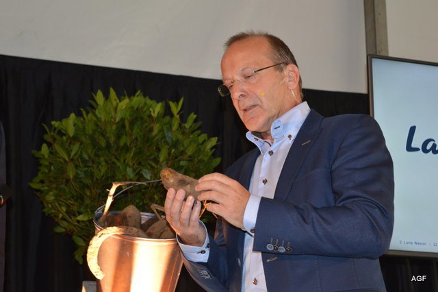De werkelijke openingshandeling bestond uit het nabootsen van een arbeidsintensieve manier voor wassen en sorteren van de aardappel. Wat komt er uit de kist?