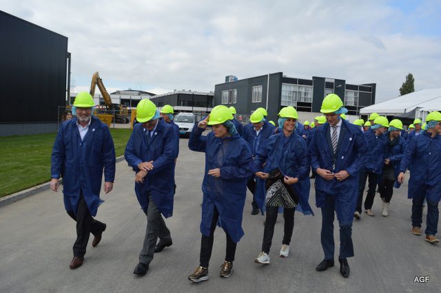 Links gedeputeerde Joannes de Bat laat zich het productieproces uitleggen.
