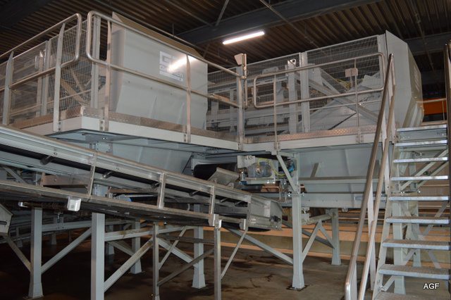 De bunkers met het gewassen product. Klaar om aan de vraag vanuit de productie te kunnen voldoen.
