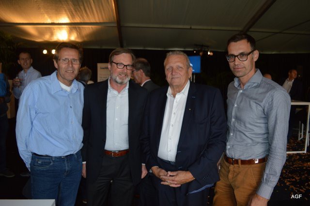 Links Pieter Zandee van Sinke Groep (grondverzet en sloopwerk), Jaap Meeuwsen, Sjaak Houtman en Huib Meeuwsen van Meeuwsen Constructie.