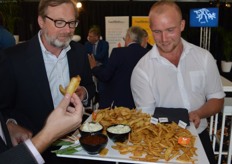 Links Francis Vanrusselt is inkoper van grondstoffen, transport en verpakkingen bij Lamb Weston-Meijer VOF. Rechts Cees Butter van AB Texel, Butter Group en A-ware Logistics. Deze bedrijven hebben onlangs hun krachten gebundeld.