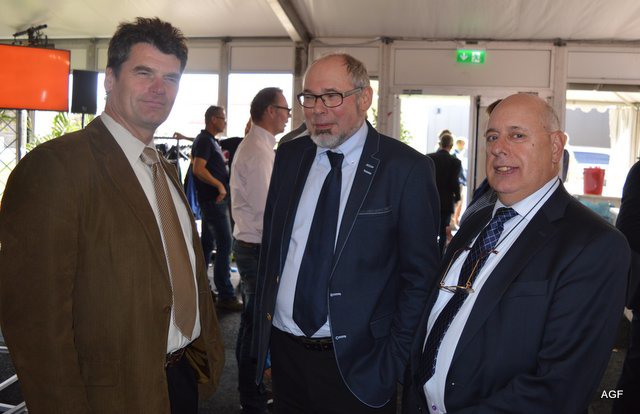 Links Harry Vossebeld, Overleggroep Producenten Natte Veevoeders afgekort tot OPNV, Cees van Rij van LambWeston en Hans Leerssen van de vereniging voor de aardappelverwerkende industrie. (VAVI)