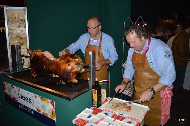 Tussendoor even een stukje proeven van het varken aan het spit.