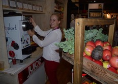 Sophie Roodenburg laat mensen proeven van yoghurt ijs.